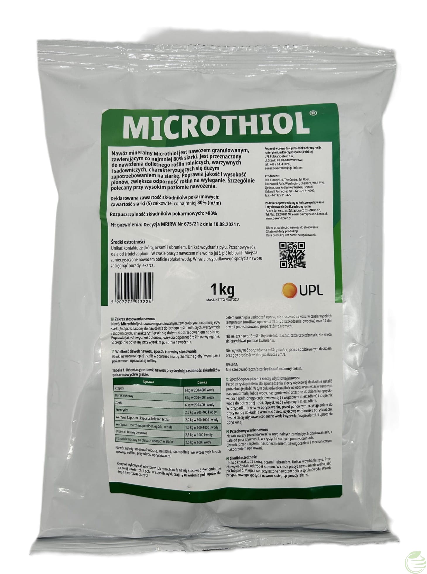 Microthiol 80 WG to nawóz w postaci granulowanej, posiadający co najmniej 80% siarki. Nawóz stosowany jest do dolistnego nawożenia upraw rolniczych, warzywniczych oraz sadów, u których występuje niedobór siarki.