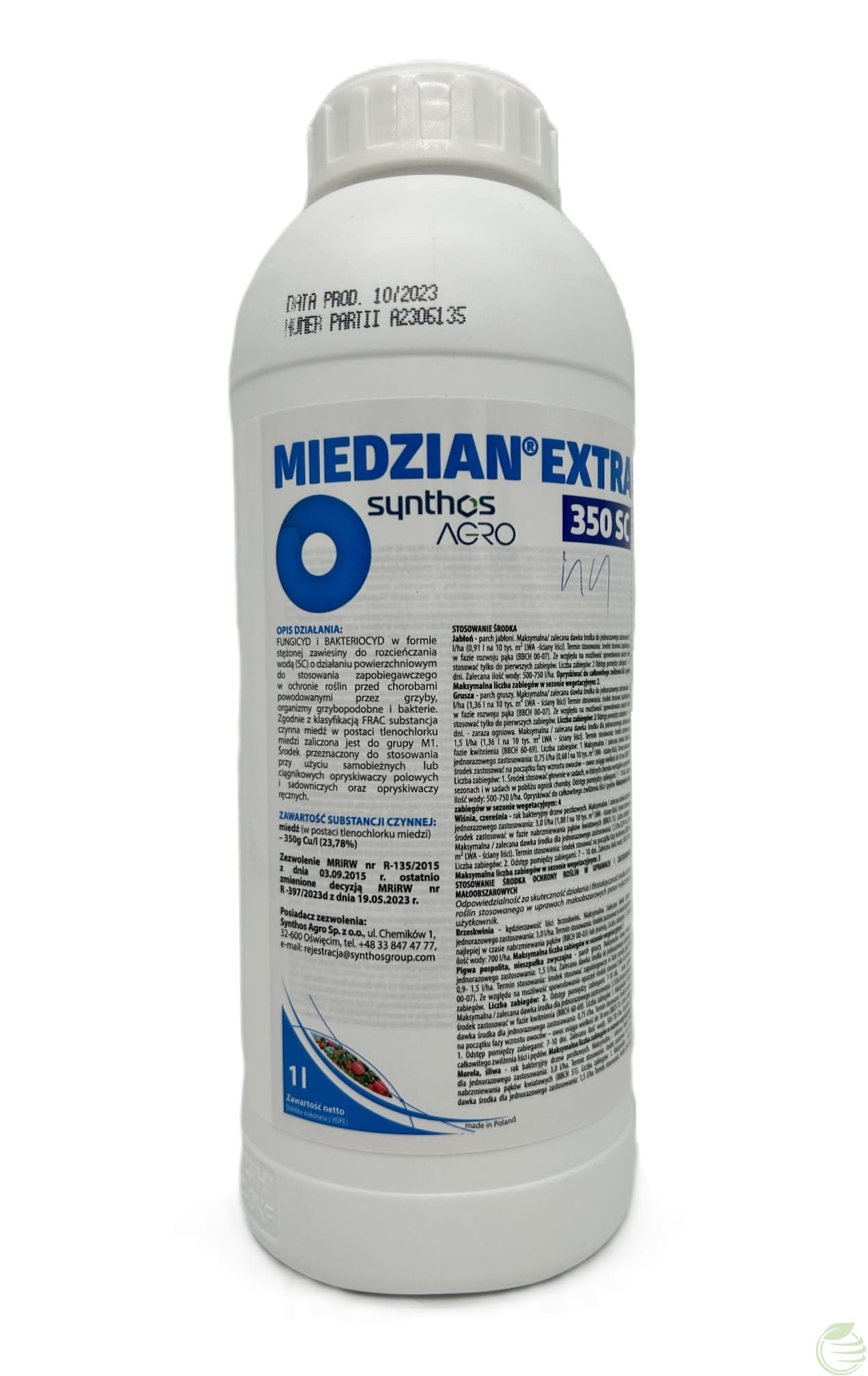 Miedzian Extra 350 SC jest środkiem grzybobójczym, koncentratem w postaci stężonej zawiesiny do rozcieńczania wodą o działaniu powierzchniowym, do stosowania zapobiegawczego w ochronie roślin sadowniczych i warzywnych przed chorobami.
