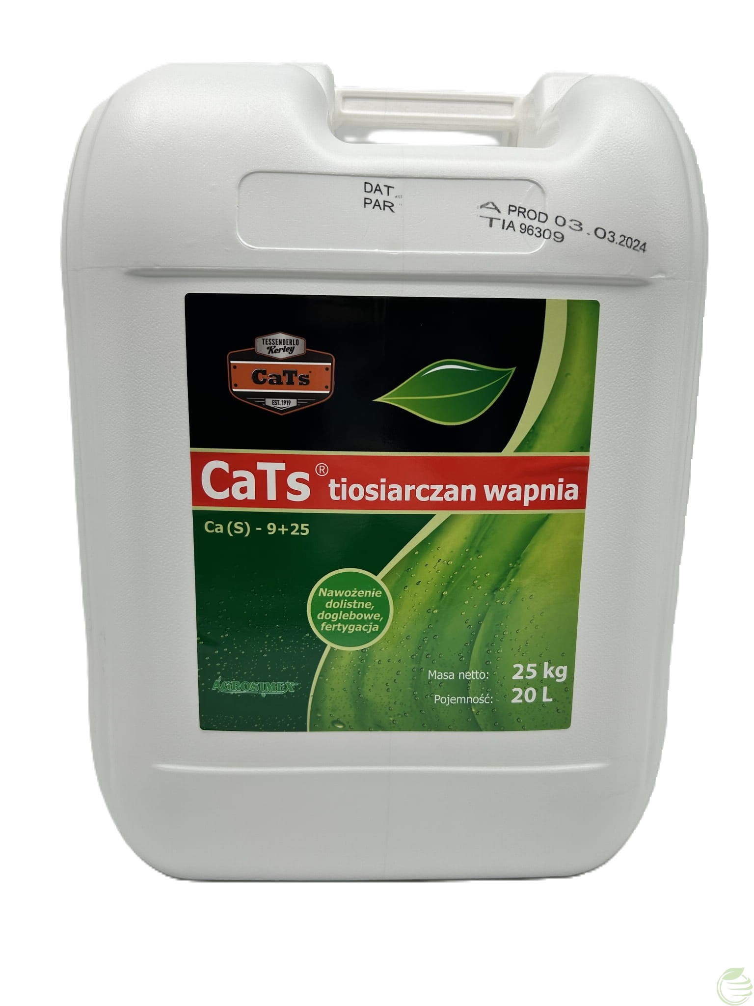 ASX CaTs TIOSIARCZAN WAPNIA to płynny nawóz wapniowy z siarką firmy ASX przeznaczony do likwidacji niedoborów wapnia i siarki. Wapń w postaci tiosiarczanu wapnia jest szybko przyswajalny przez rośliny. Przeznaczony jest do stosowania w uprawach warzywnych, sadowniczych i rolniczych. Działa jako stabilizator azotu oraz inhibitor ureazy. ASX CaTS stosowany łącznie z mocznikiem lub RSM podnosi efektywność zastosowanego nawożenia azotem. Dodatkowo powoduje zwiększenie dostępności mikorelementów, m.in. potasu, żelaza, manganu i magnezu. Wspiera system immunologiczny roślin i poprawia ich zdrowotność. Wpływa też na poprawę struktury gleby, zwiększa dostępność wody, zmniejsza stres wodny oraz obniża zasolenie gleby. Nie zwiększa pH gleby.